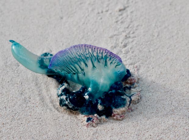 Found this very intact blue bottle while bike riding around Rottnest Island. Had be ignorantly swimming before realising the beach was covered in them! This was the only one we found with this much detail still apparent. I hadn't realised just how beautiful they are!