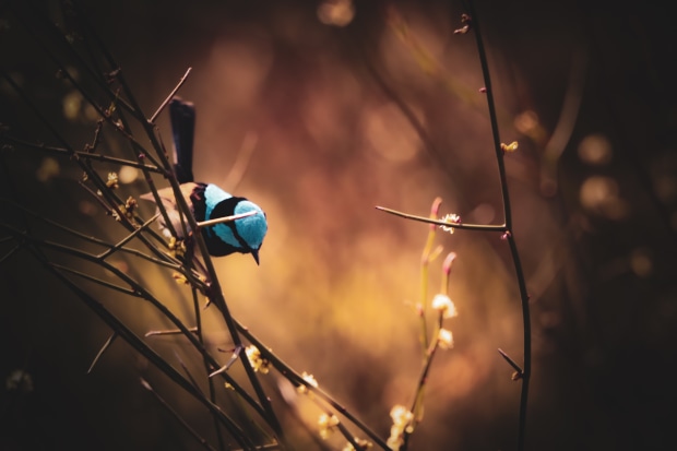 Little blue bird in the early morning