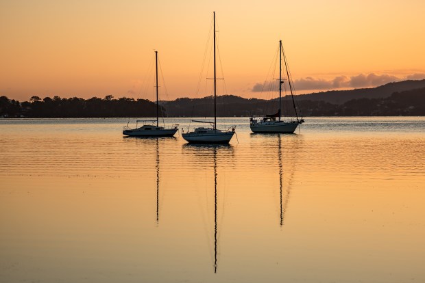 Colin Slack, Boats at sunrise on Brisbane Water Koolewong (June theme: Australian Landscape)