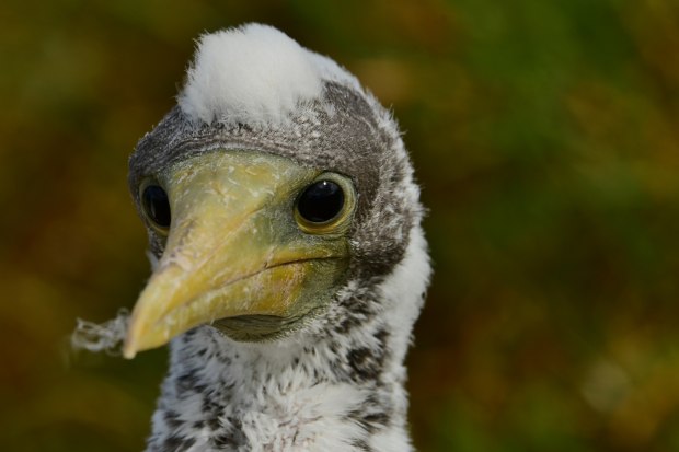Found on Norfolk Island part of a series on these remarkable birds, hiding behind a wire fence on the edge of a cliff. The baby squawked but the parents did not feed it.