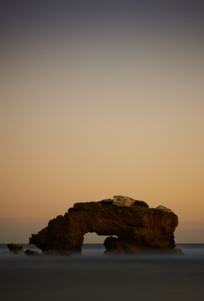 Taken at Bridgewater Bay at sunset, the waves were crashing all around the rock, creating a beautiful soft mist at the base.