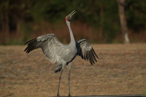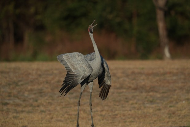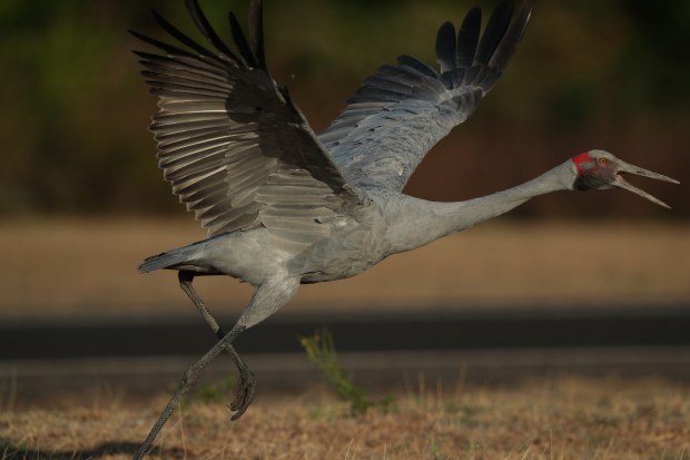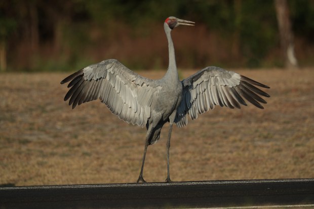 This brolga stood on the side of the road and gave an attention display so his family could cross the road.