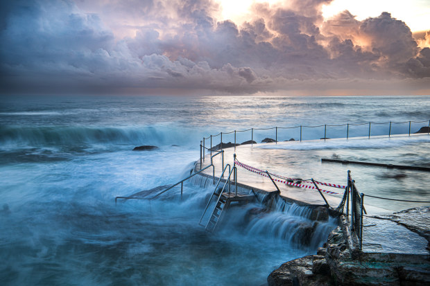 First light on a moody morning looking out over Bronte Baths, in Sydney Australia