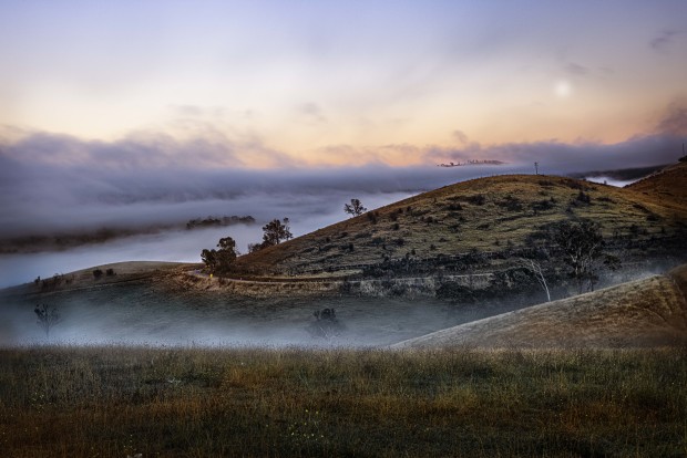 Image was captured at dawn looking out over the Buchan Valley shrouded in fog. Ten minutes later the fog had risen upwards and shrouded the scene completely.