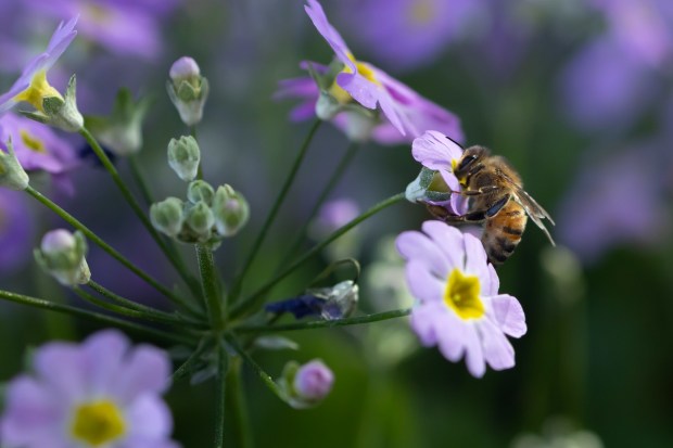 Cute little bee visiting a flower
