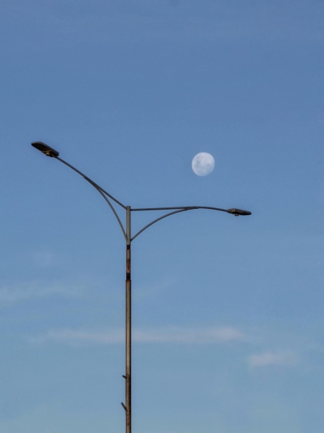 A Melbourne lamppost and the moon.