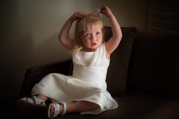 Caitlin was just checking her bow before she was flower girl for her Aunty