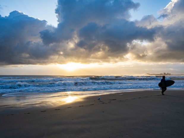 Some people are very dedicated in going into cold water early in the morning to catch the waves before work.