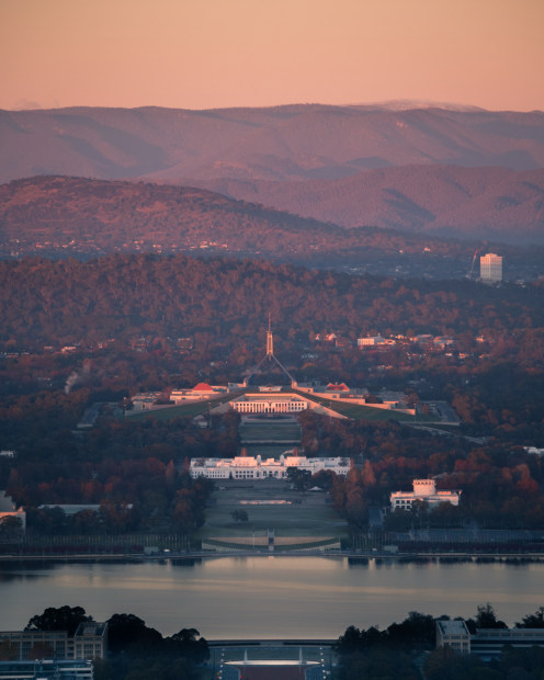 Ben Hogan, Canberra and the Brindabellas at sunrise (June theme: Australian Landscape)