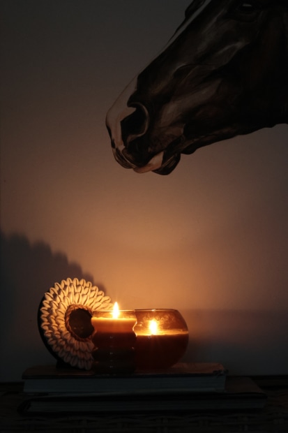 The warm light candles throws interesting shadows and a warm glow - Handsome Harold looks his best by candlelight