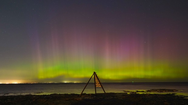 A rare and breathtaking display of the Aurora Australis illuminates the night sky over Ricketts Point Marine Sanctuary. In this long-exposure capture, vibrant curtains of green and violet dance above the calm waters of Port Phillip Bay, framed by the iconic wooden tripod marker. This moment captures the silent, awe-inspiring power of the great outdoors, where the earth's magnetic field meets the beauty of the Australian coastline.