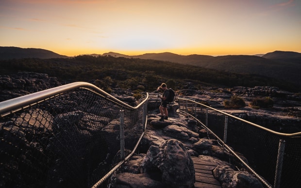 This was taken at the Pinnacle Lookout, Grampians during golden hour. I had hiked up with a friend and caught him getting ready to take a photo.