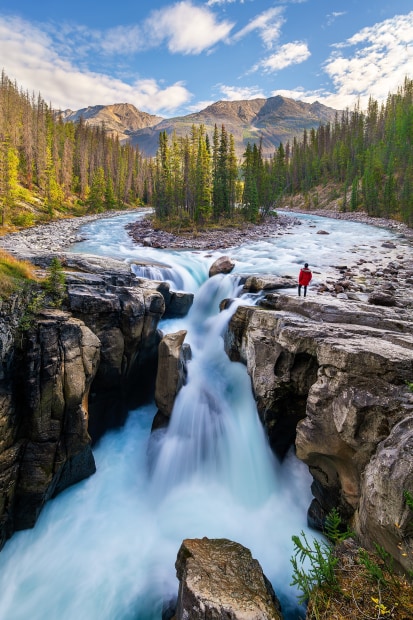 A breathtaking view of Sunwapta Falls that I captured on a cool and calm morning during my trip to Alberta, Canada.