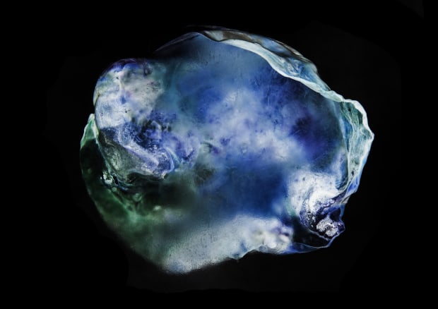 This image is a part of a series of self portraits that had been printed onto transparent film, melted in cooking oil, frozen in water and re-photographed. The Image was taken to look as if it was a brain scan, similar to scans that show the chemical imbalance in the brain in relation to anxiety and depression. Exposing this as a 'distortion of the brain'.