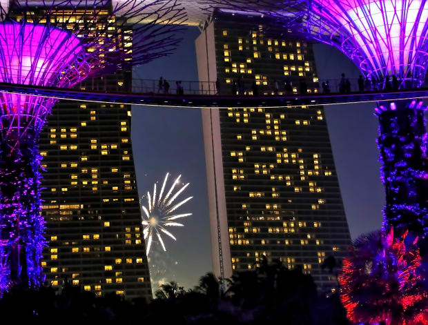The Chinese New Year or Spring Festival is celebrated each year, generally in the month of February. It is a grand occaison particularly at night with fireworks as well as the usual visual feast at the Gardens by the Bay, SuperTree Grove.