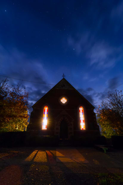 Driving home from a landscape shoot, I saw this church glowing beautifully, alone on a street. I had to stop and fire off some shots.