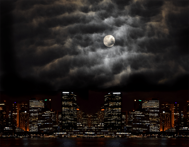 Brett John Kelly, City & Moon (May theme: The night sky)