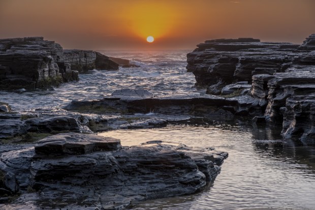 Taken on the northern rock platform at Coledale Beach, sunrise at a time of year where the sun lines up with the gutter.