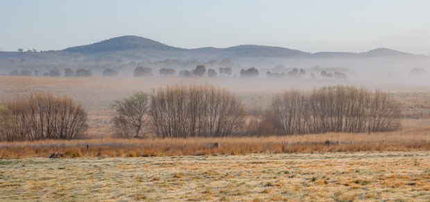 On a cold winter’s morning I came across this scene. I loved the beautiful colours of the countryside, the grass covered by a heavy frost, tree tops starting to peep through the fog, and the gentle rolling hills in the background.
