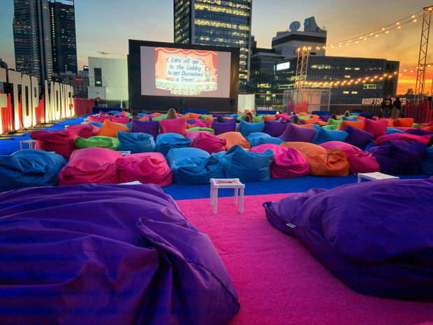 Beanbags at a rooftop cinema