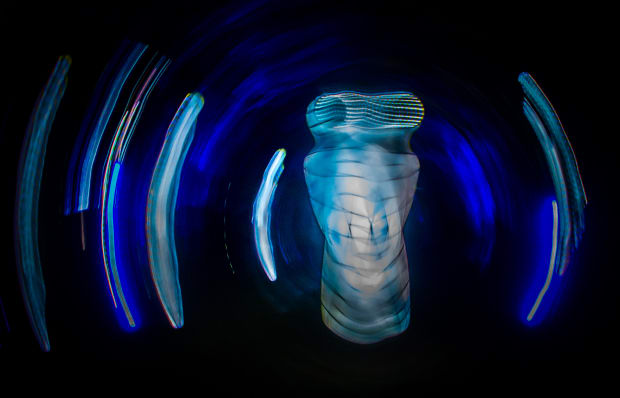 Using a fish eye lens and motion blur I created an in camera abstract take on the mummies hanging from trees in Sydney Botanic Gardens during Vivid 2017