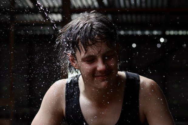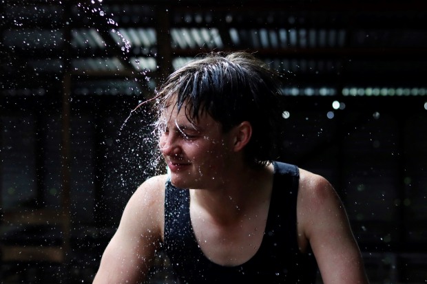 Cooling down from a hard days work in the shearing shed