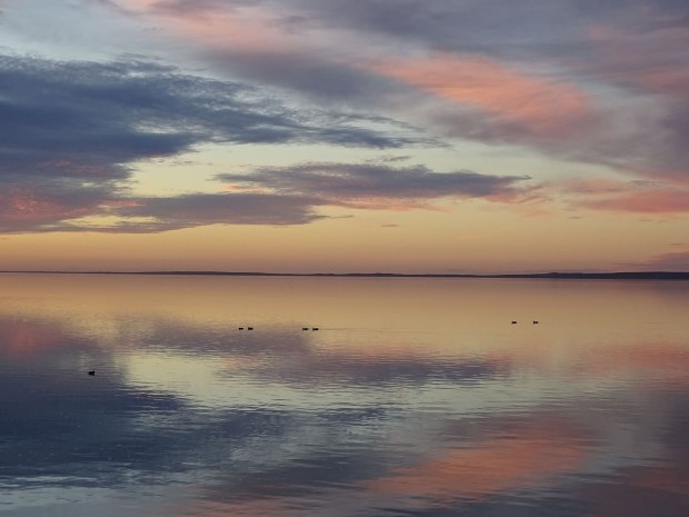 This photo was taken 3/6/2018 at Meningie on the river as the sun was setting, the water was so calm it created a mirror of the sky