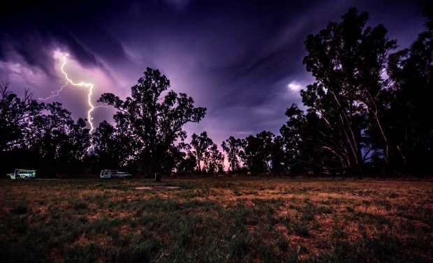Camping out in the middle of country Wantabadgery NSW, I was returning back to camp from a trip into Wagga Wagga. I was driving ahead of a storm, watching it begin to catch up to me in the 4x4 mirrors. I was hoping to beat it back to the campsite so that I could set up my camera in time to try to capture lightning; this is something I haven't tried to do in over a decade! Hovering under a small shelter, I set up the camera and the tripod, aimed into the pitch dark night and hoped for the best. I was so ecstatic to get this image because it didn't take long for me to have to seek safer shelter in the camper trailer moments after! There's something quite special about being stuck in a storm in the middle of an open field with nothing more than a canvas tent to shelter you from the weather to remind you just how powerful Mother nature can be!
