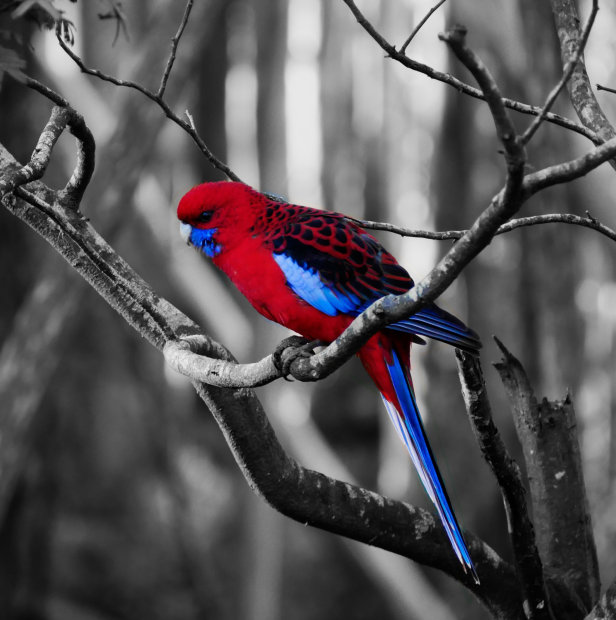 Kerry Peter, Crimson Rosella, Mount Macedon (Color Isolation) (September theme: Things that fly)