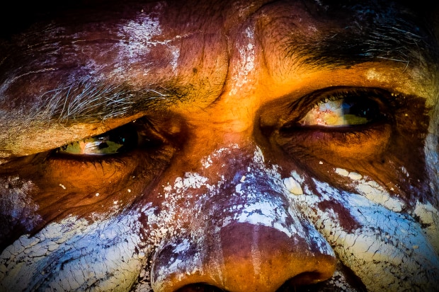 Danny is a Wakka Wakka man. After performing a traditional Welcome to Country, he listens to the Federal Court judge deliver a decision on the Land Application at Cherbourg (Qld April 2022). Some expressed joy at the success of their campaign. Others remembered the 180 years of dispossession, institutional confinement by the State and the ancestors who never lived to see such recognition or freedom. This image expresses the irony of the decision. Danny is being handed back control of the unused portions of the land that was always his. This history and irony are expressed in Danny’s eyes.