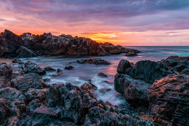 Dawn breaks over Boambee Headland, NSW.