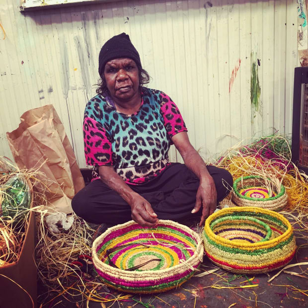 Diane is a Ngaanyatjarra artist, who I found weaving spinifex baskets on the floor of the Wingellina art centre. She took her glasses off for the photo, laughing and telling me that the photo was going to make her famous.