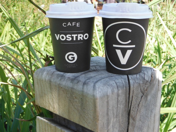 Two coffee cups symmetrically lined.