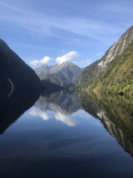 The serene beauty of Doubtful Sound is never in doubt as you sail through this unspoilt fjord on the South Island of New Zealand. The magnificence of its majestic mountains and the tranquility of nature at its finest are a sight to behold. The water is pristine and glacial, reflecting the landscape in a mirror of almost black glass, creating the most amazing symmetry to decieve the eyes. In the dawn of New Year’s Day, it leaves the viewer with a feeling of awe and a sense of hope in the nature before you.