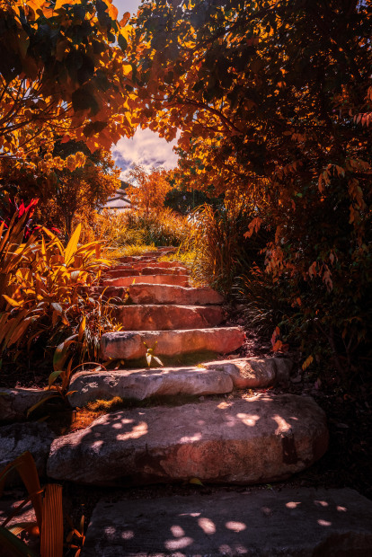 A warm glow transcending down up the stairs, enticing and welcoming to walk towards the light.