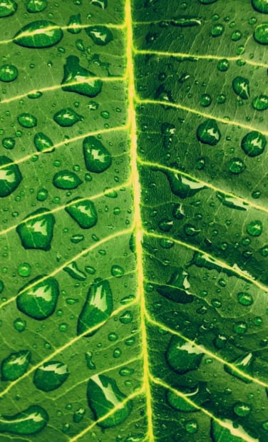 Water droplets formed of leaf after storm