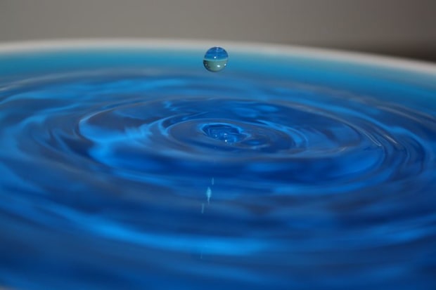 A bowl of died water with a drip splashing out.