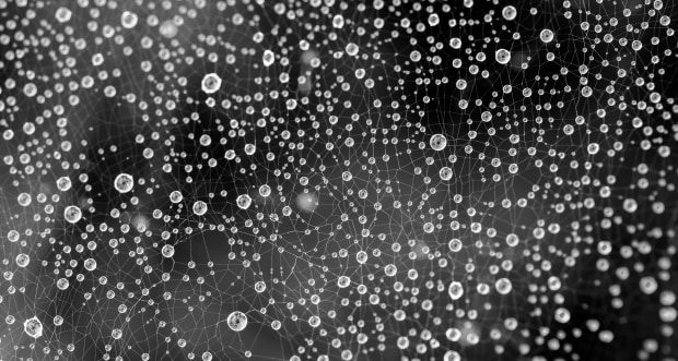 Keith Horton, Droplets of water on a cobweb (June: Nature's Perfect Geometry)
