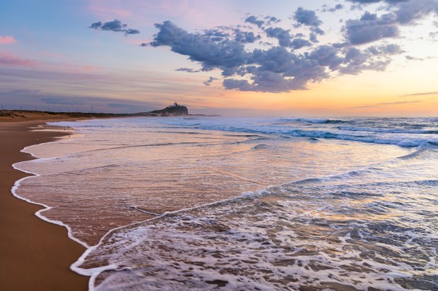 A view of Nobby's Beach in Newcastle, the waves washing up on the shore