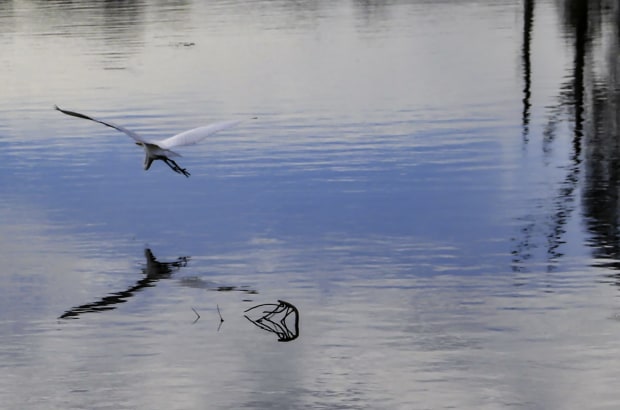 Julie Sinclair, Egret over the lake (SINGLE SHOT 2023)