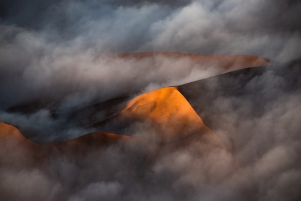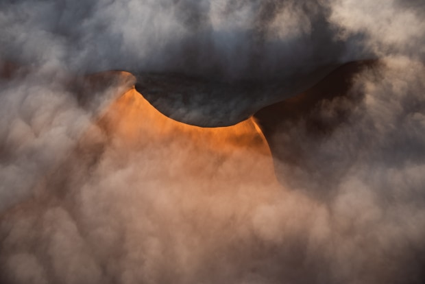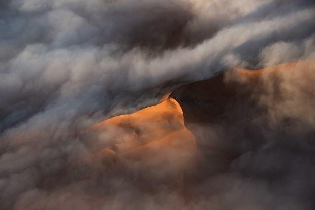 Aerial shots of an extraordinary morning above the dunes of Sossusvlei in Namibia where the fog took over.