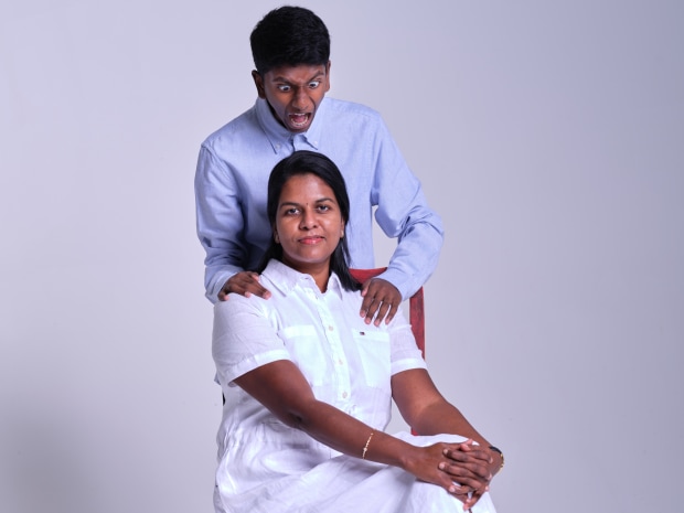 the contrast of emotions between my teenage son and wife during a photoshoot, it encapsulates calm, pragmatic demeanour of a mum, in the face of onslaught of teenage emotions