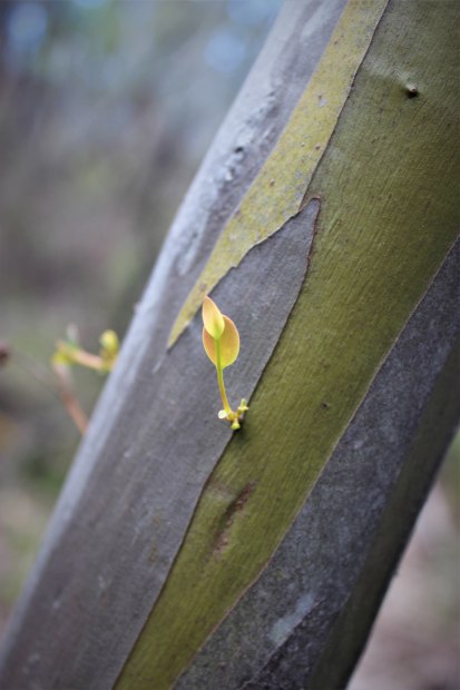 A vibrant epicormic shoot on a eucalypt trunk