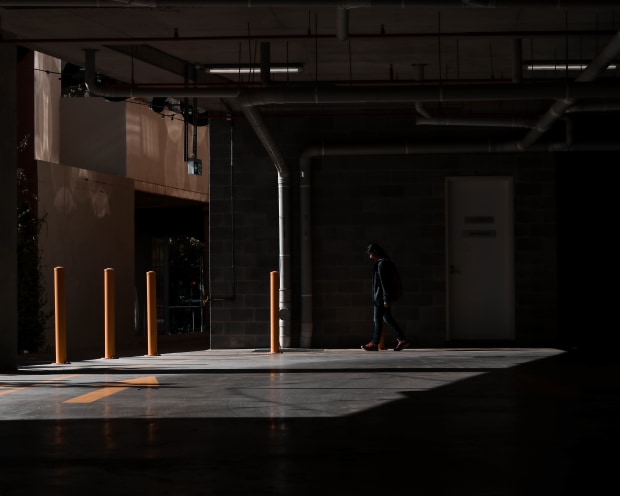 A woman exiting a parking lot. A candid shot, I had taken of a passerby I gained permission to use for this competition, after showing her the photograph she admitted that she didn't even know I'd taken it due to her being "lost in thought" at least no matter how lost you are. There's always an exit.