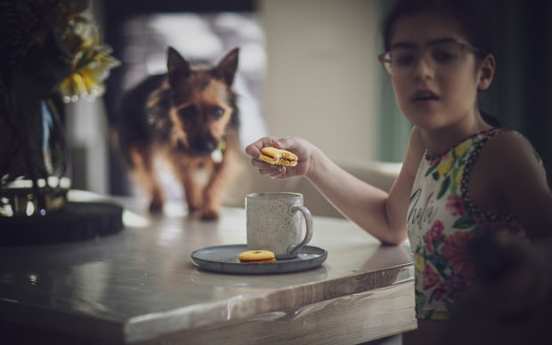 Anyone who has ever owned an Australian Terrier will understand what lengths this cheeky breed will go to if it means they may score so much as a crumb of food. This image captured 2 year old Sniffany with her "eyes on the prize" - a jam shortbread biscuit right out of her human sister's hand. It was a long shot but I admire her motivation!