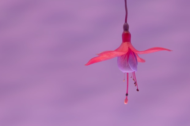 This close-up of a fuchsia flower captures the theme of 'little things' by evoking the delicate grace of a tiny dancer. With its vibrant colours and elegant form, the bloom resembles a fairy poised mid-dance, celebrating the enchanting beauty that often goes unseen in nature's smallest wonders.