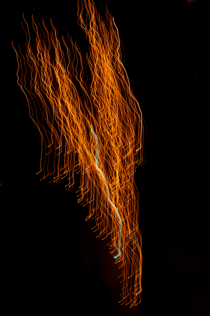 Fairy lights in a tree. Image captured by dragging the camera downwards whilst using a slow shutter speed.