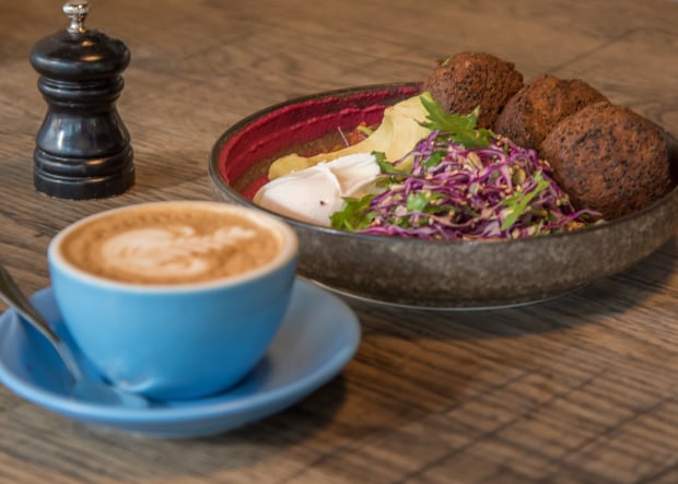 Denny Christian, Falafel Rainbow Salad and Flatwhite (July theme: Food)