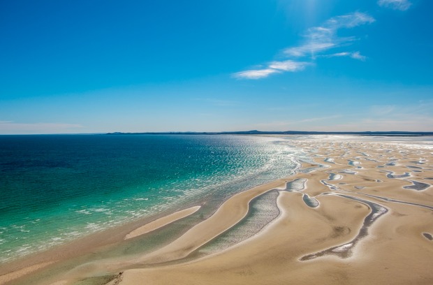 Taken at False Beach, Whyalla. This is a Kite Aerial photograph, taken by using a large 3.5 metre delta kite to lift a camera with intervalometer. The tide was out leaving lots of individual pools of water.