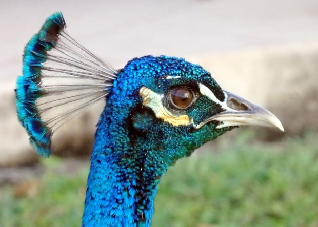 The male peacocks have a wonderful little triangular feathered shaped head piece